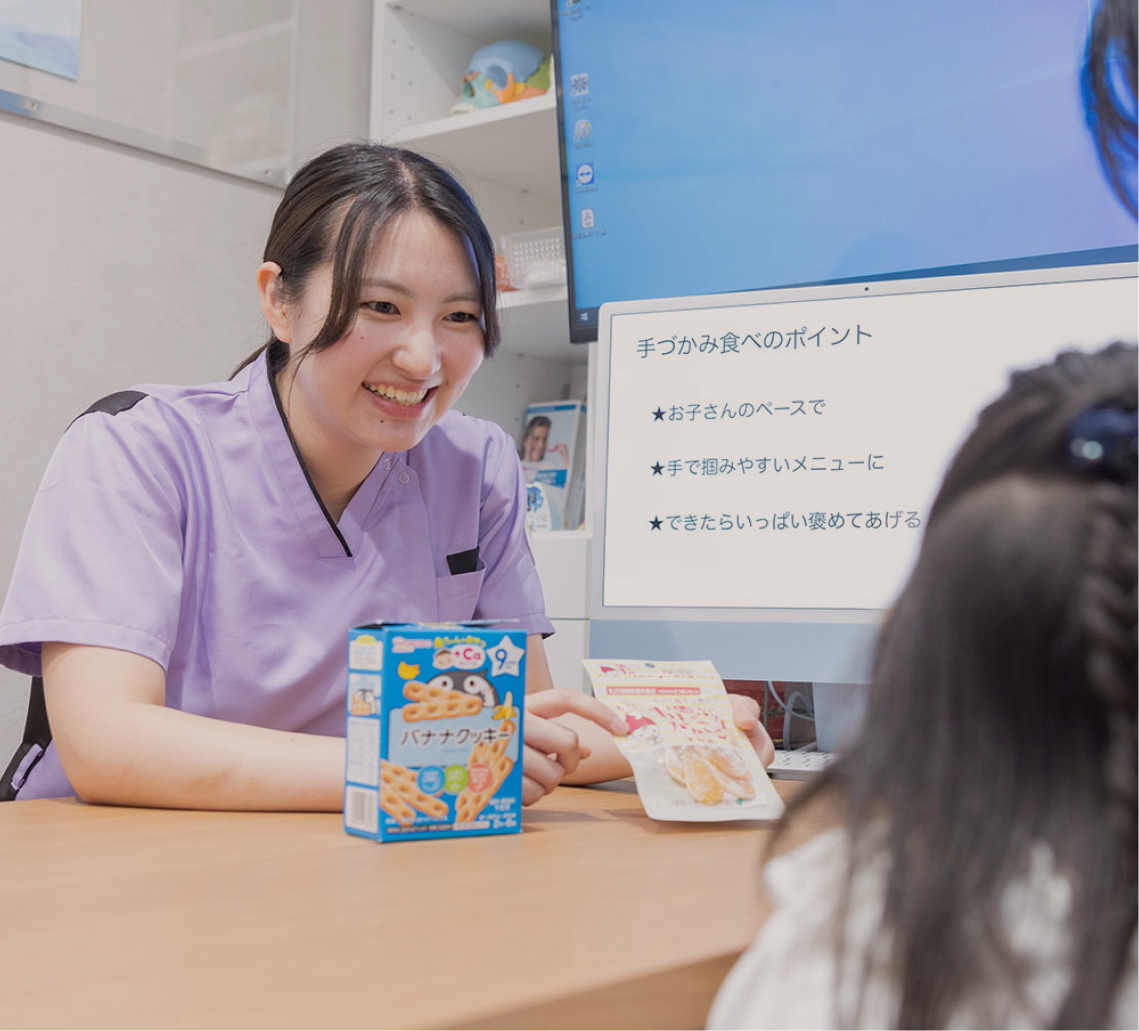 当院では、言語聴覚士の資格を活かして、小児の口腔機能やことば・摂食発達を支援できます。0歳からの口腔育成に携わり、赤ちゃん期から成長を見守る中で専門性を深められる環境です。