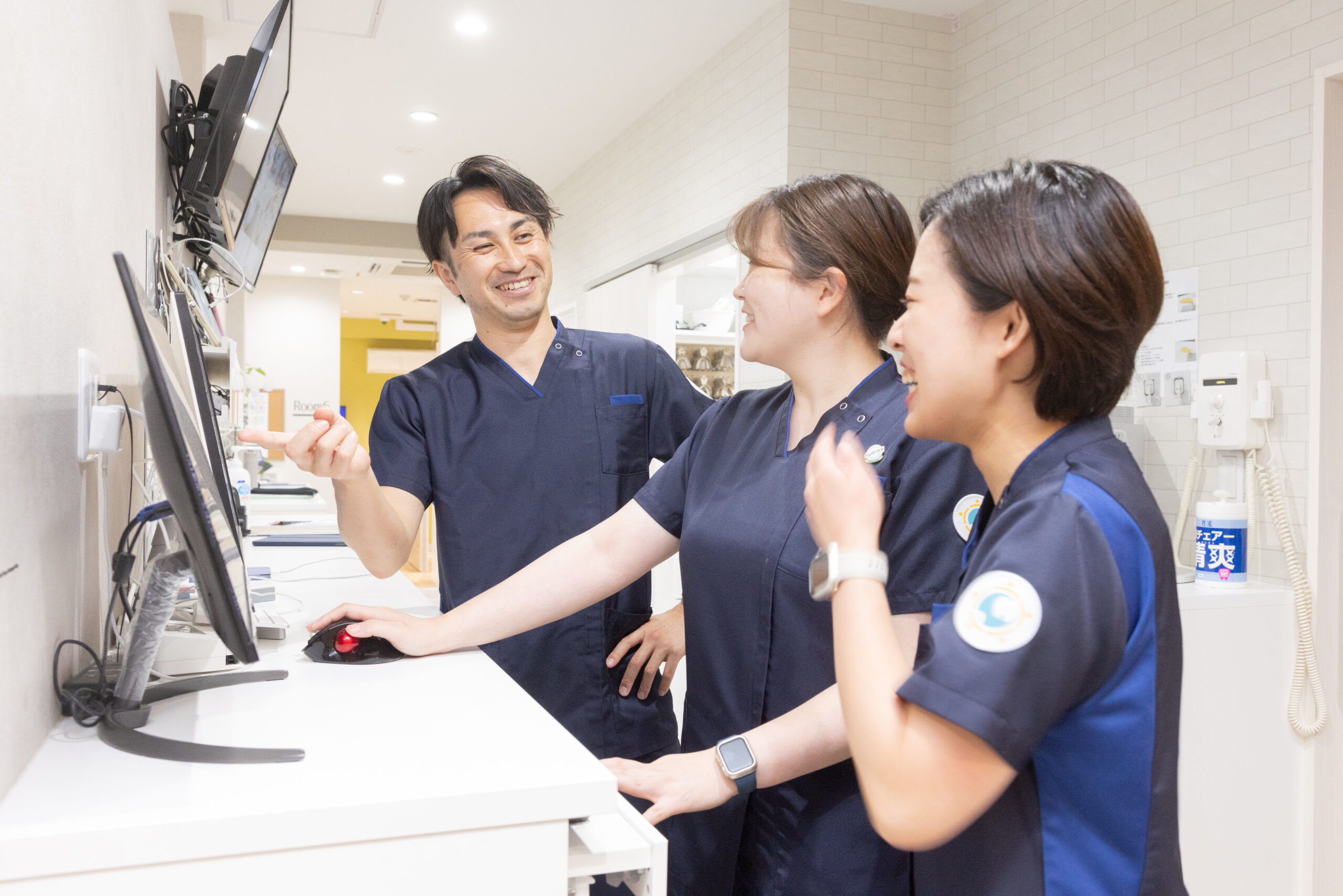 新卒や経験の浅い方でも安心して成長できる教育カリキュラムを整えています。チェアサイドでのOJTに加え、症例検討・振り返り・先輩ドクターの指導を通して、診断力・治療技術・説明力を段階的に育成していきます。